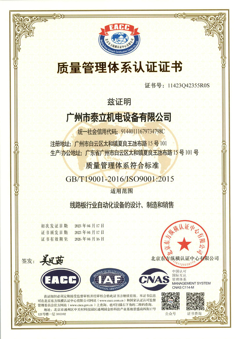 《質(zhì)量管理體系認(rèn)證證書(shū)》